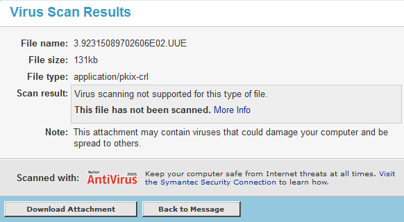 Uhh…What I was saying is, this email had an attachment with UUE extension! The email provider’s anti-virus checked it, and it said the attachment was clean!